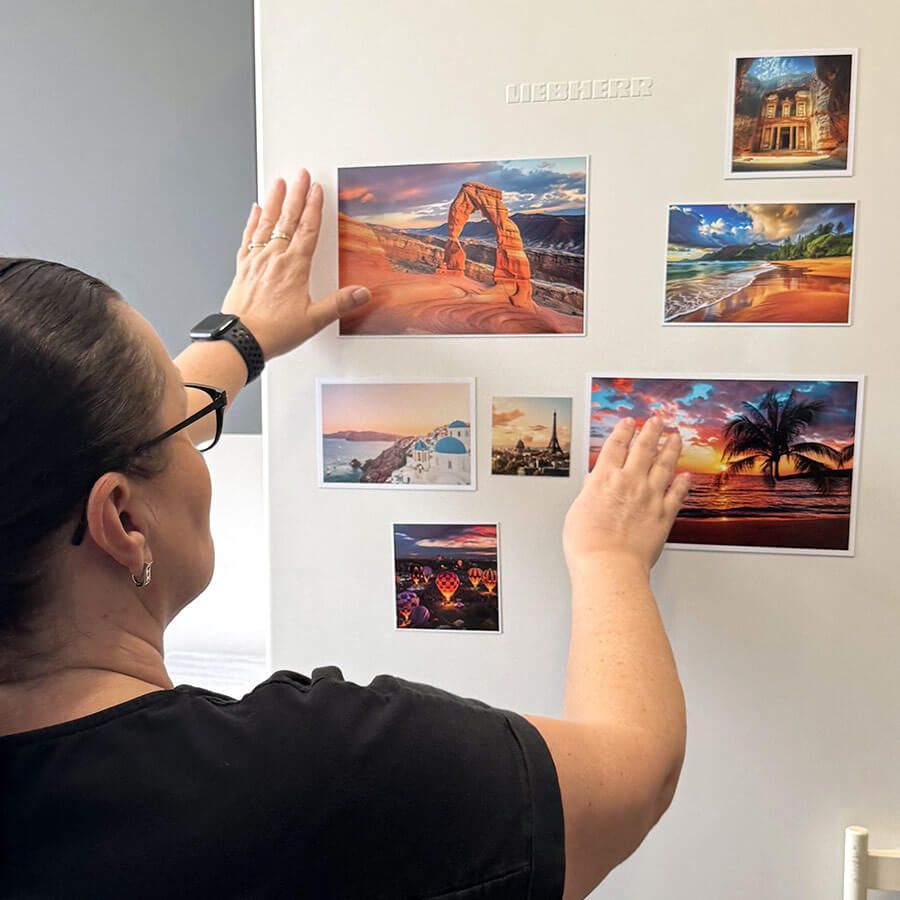 Všetky fotomagnetky vyrábame z pružnej tenkej magnetickej fólie, ktorá nielenže dostatočne drží na chladničke, ale dokáže sa prispôsobiť aj miernemu zakriveniu. Naše magnetky sú pevné a zároveň ohybné a vďaka prémiovému fotopapieru vyzerajú jednoducho skvele. Nemusíte nič inštalovať ani zložito orezať. Nahrajte fotky priamo z telefónu a o zvyšok sa postaráme my.